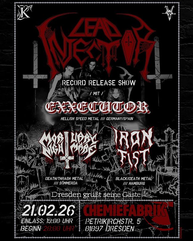 [Sa, 21.02.2026] - Chemiefabrik Dresden - 22€  + Lead Injector (Speed Metal) + Exxecutor (Blackened Speed Metal) + Sphinx (Speed Metal) + Iron Fist (Thrash Metal)