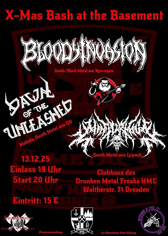 [Sa, 13.12.2025] - Drunken Metal Freaks Dresden - 15€  + Dawn Of The Unleashed (Melodic Death Metal) + Bloody Invasion (Blackened Death Metal) + Mind Carnage (Death Metal)