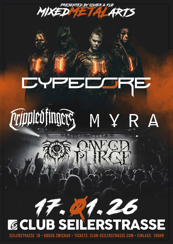 [Sa, 17.01.2026] - Club Seilerstraße Zwickau - 26€  + Cypecore (Industrial Death Metal) + Crippled Fingers (Groove Metal) + Myra (Hardcore) + Omega Purge (Melodic Death Metal)