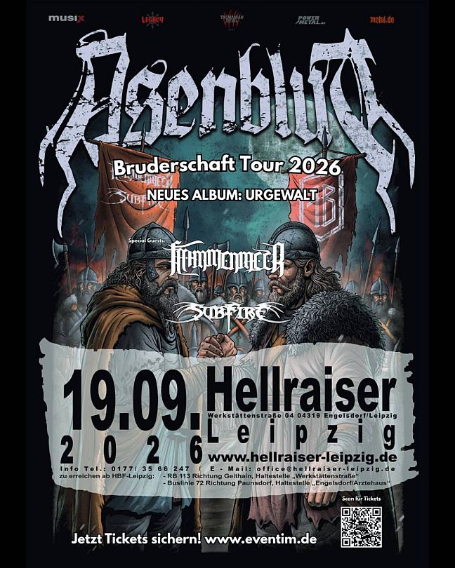 [Sa, 19.09.2026] - Hellraiser Leipzig - 28€ + Asenblut (Melodic Pagan Death Metal) + Flammenmeer (Vikingcore) + Subfire (Power Metal)